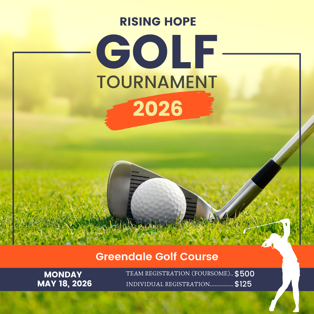 Rising Hope is teeing up its Annual Golf Tournament for this Spring. Join us May 18 at Greendale Golf Course for a morning of golf and fellowship.